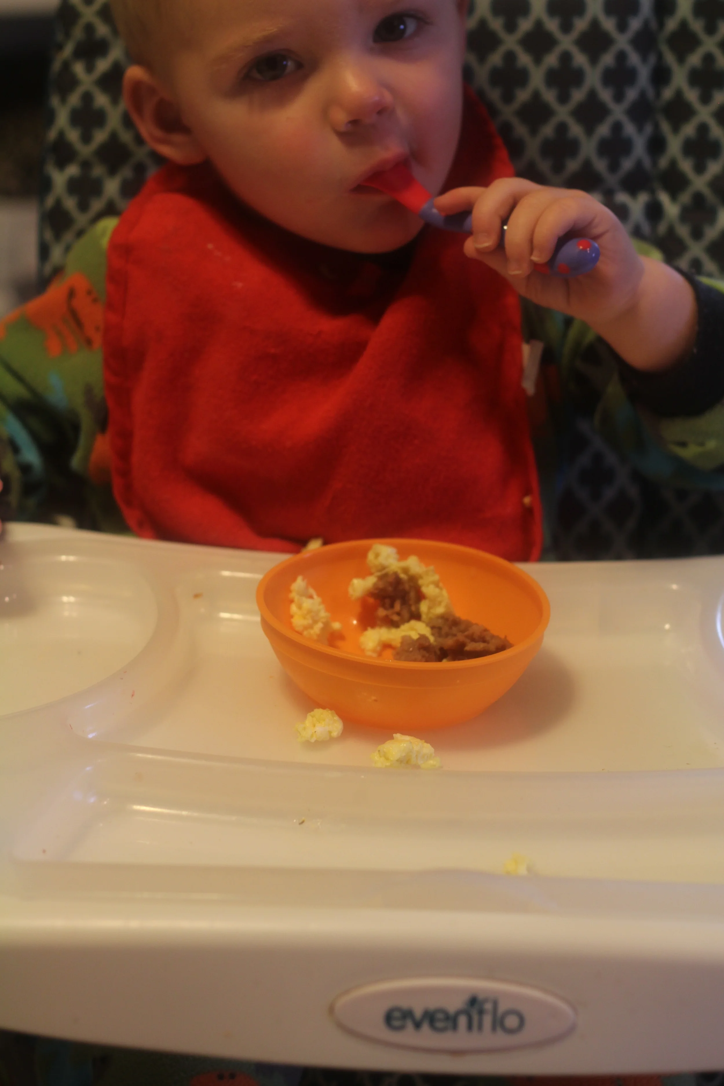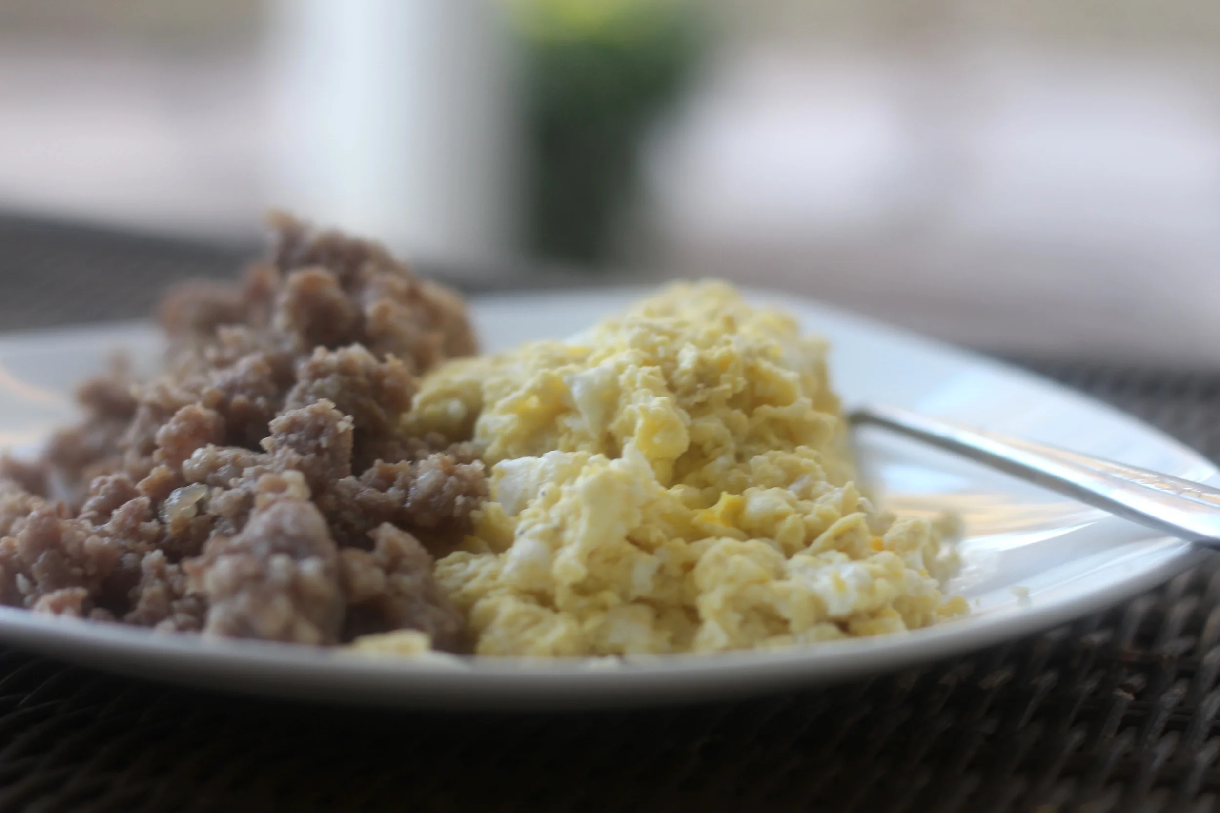 Breakfast this morning! Eggs and sausage weighed and measured (hubs does that part)