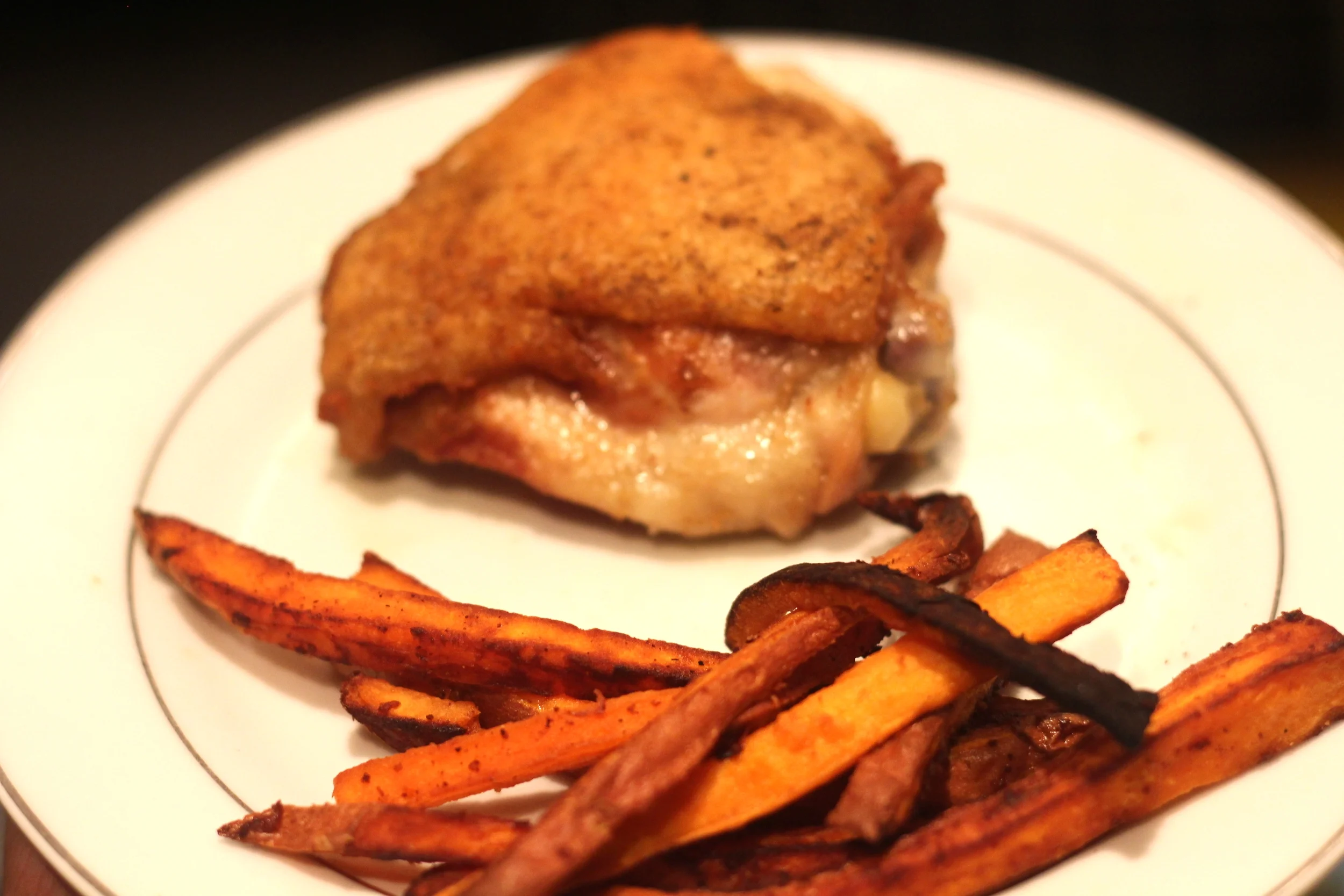Lunch: Chicken Thigh and Sweet Potato Fries!