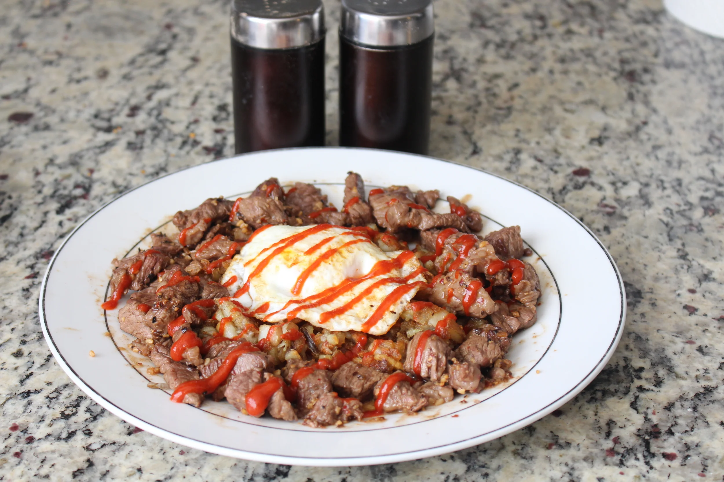 Lunch: Steak, Eggs, Red Potato and Sriracha!